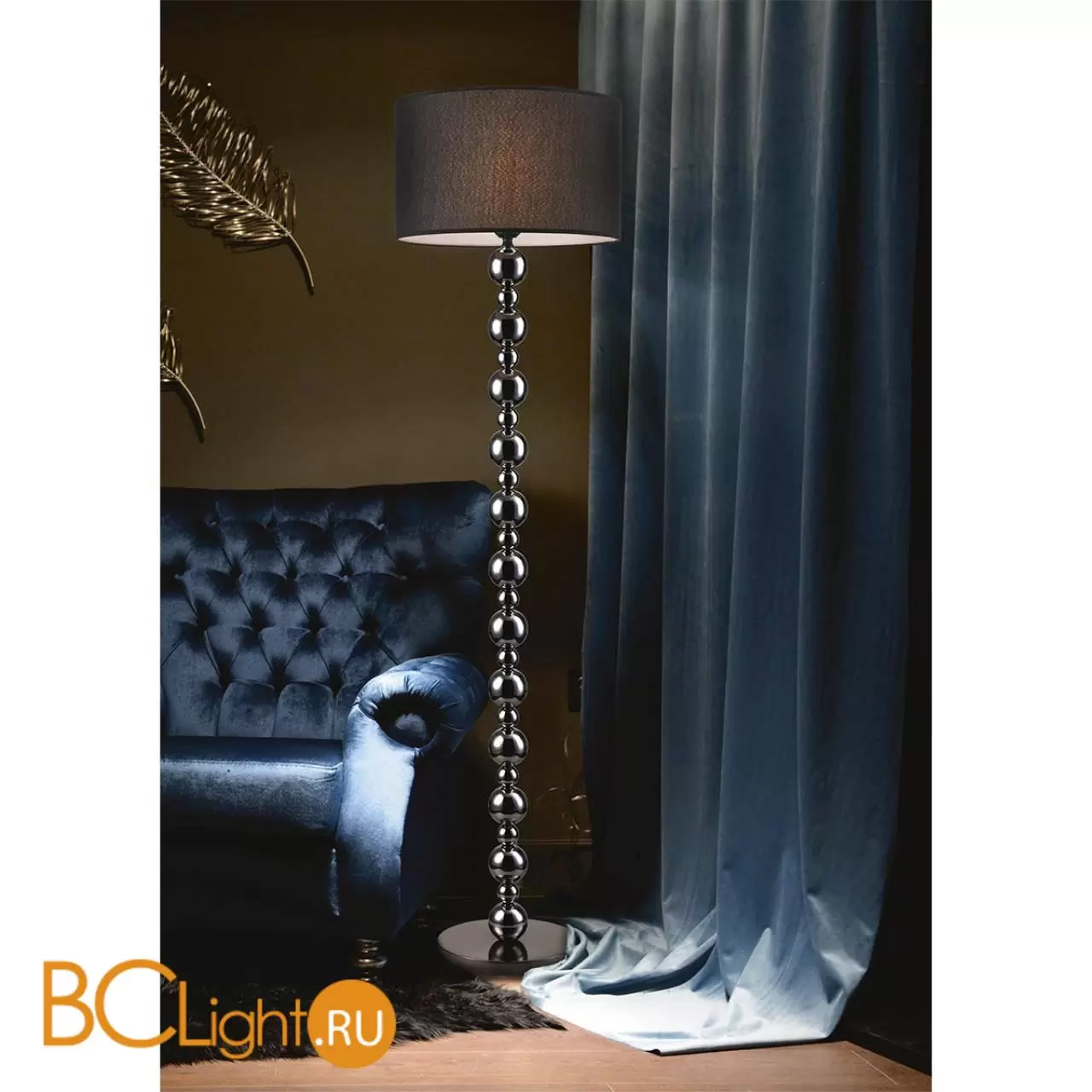 Абажуры торшеров NAVILA выполнены из текстиля черного цвета. Черный абажуры делают свет мягким, приглушенным, что располагает к отдыху и релаксу. Поэтому данные торшеры будут незаменимы в спальне или в месте отдыха гостинной комнаты. Декором служат хромированные сферические элементы из металла. В металлическом основании находится утяжелитель, который обеспечивает торшерам устойчивость.