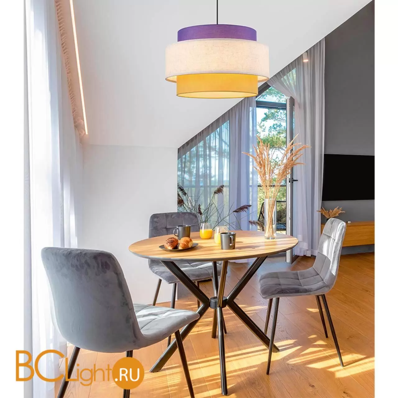Трендовая многослойность воплощена в серии PALERMO. Многоуровневый текстильный абажур состоит из трёх ярусов, каждый из которых выполнен в модных цветах: насыщенном фиолетовом, белоснежном и солнечном жёлтом. Такое сочетание оттенков создаёт яркий акцент в интерьере, добавляя ему свежести и динамики. Текстильные материалы абажура не только подчёркивают мягкость и уют, но и обеспечивают равномерное рассеивание света, создавая тёплую и комфортную атмосферу. Светильник идеально подойдёт для интерьеров в стиле сканди, модерн или эклектика, добавляя пространству индивидуальности и изысканности.