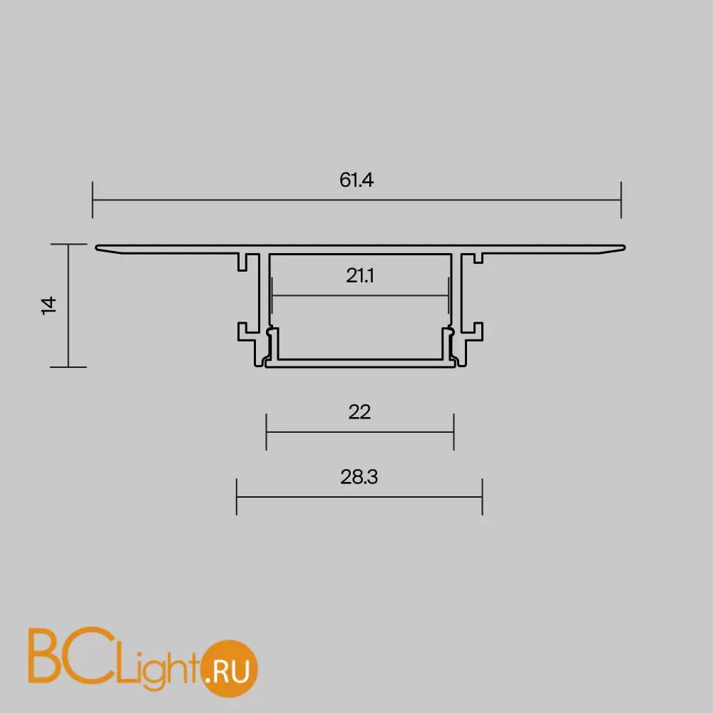 Алюминиевый профиль встраиваемый скрытого монтажа 61x14 (Серебро, 2 м), ALM-6114-S-2M 636019