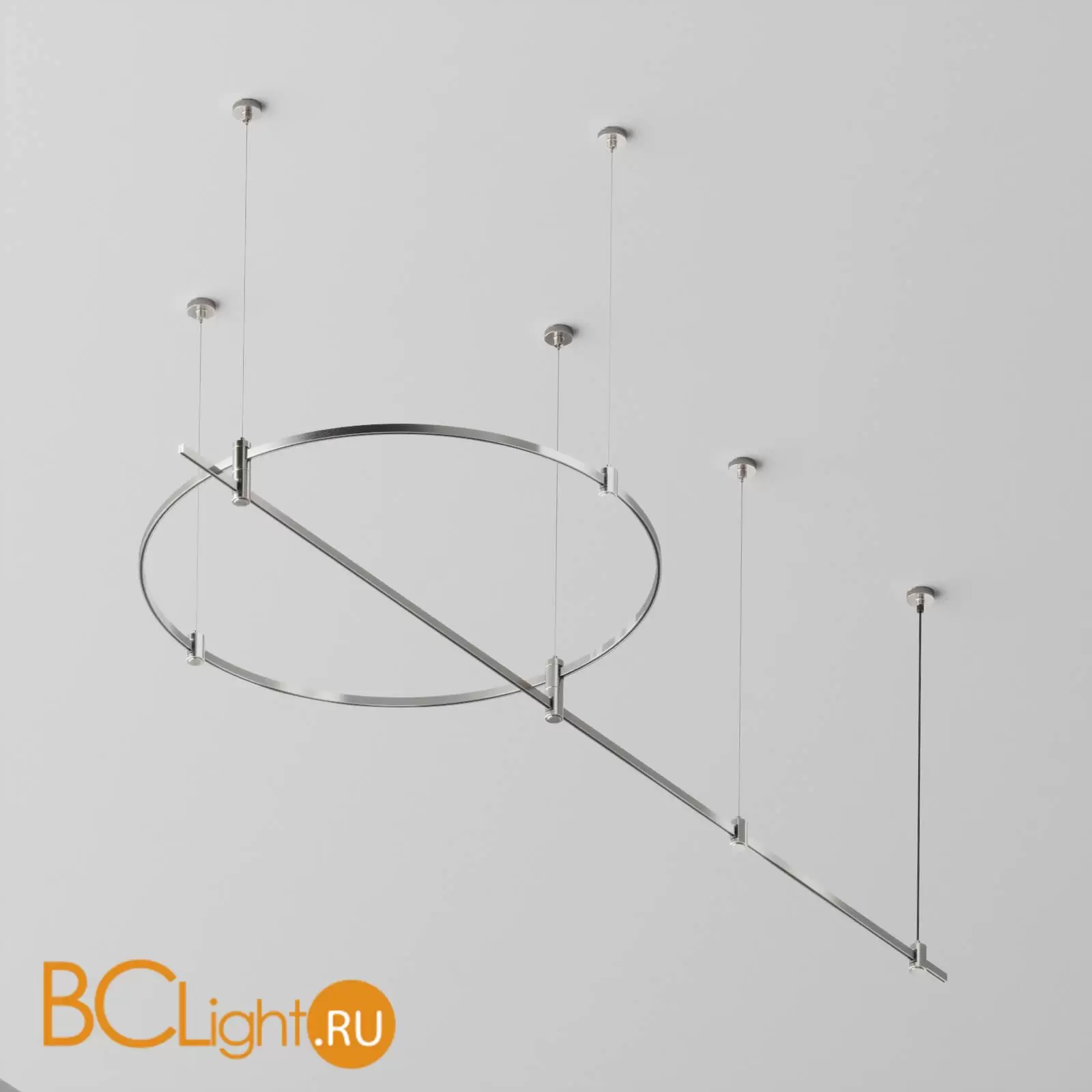 Готовая конструкция круглая + прямая двухуровневая на тросовых подвесах Hang без светильников и блока питания, платина Maytoni Magnetic trаck system Flarity TFC-Flar-H05-PT