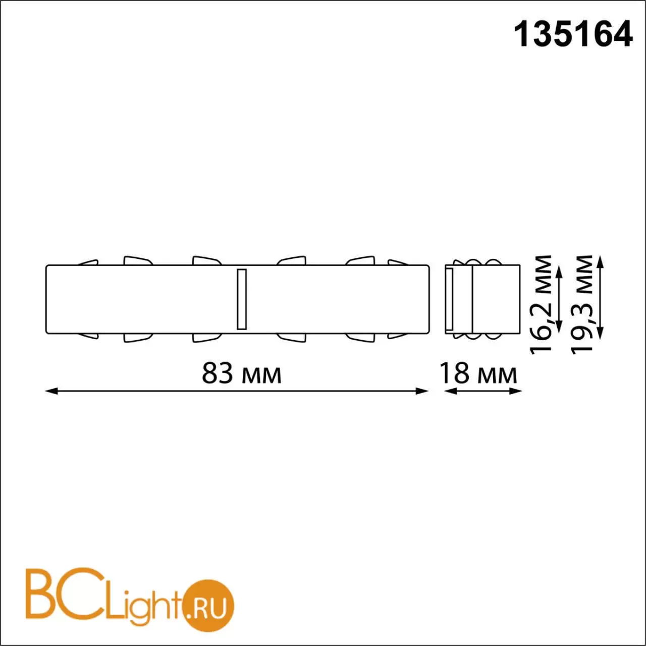 Соединитель питания прямой с планкой для накладных шин Novotech Flum 135164