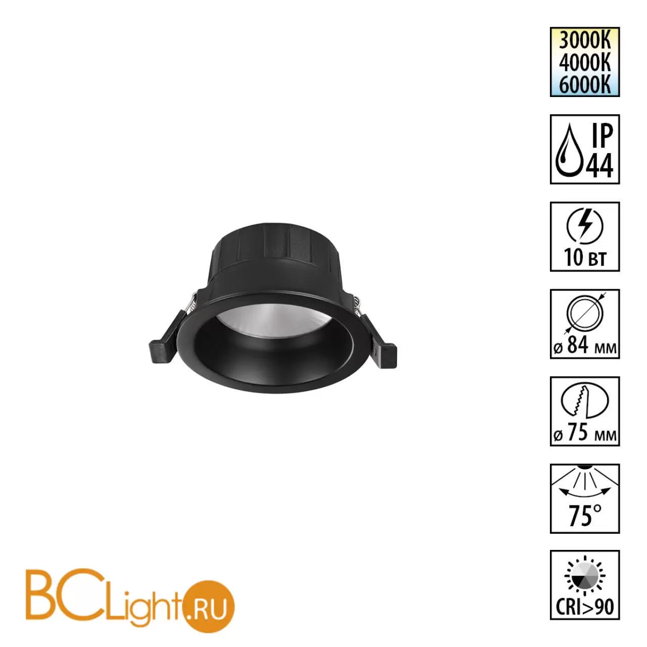 Светильник встраиваемый Nvotech WIR с переключателем цв. температуры IP44 LED Ra90 Lm675 10W 220-240V 3000К\4000К\6000К CLARA 359552