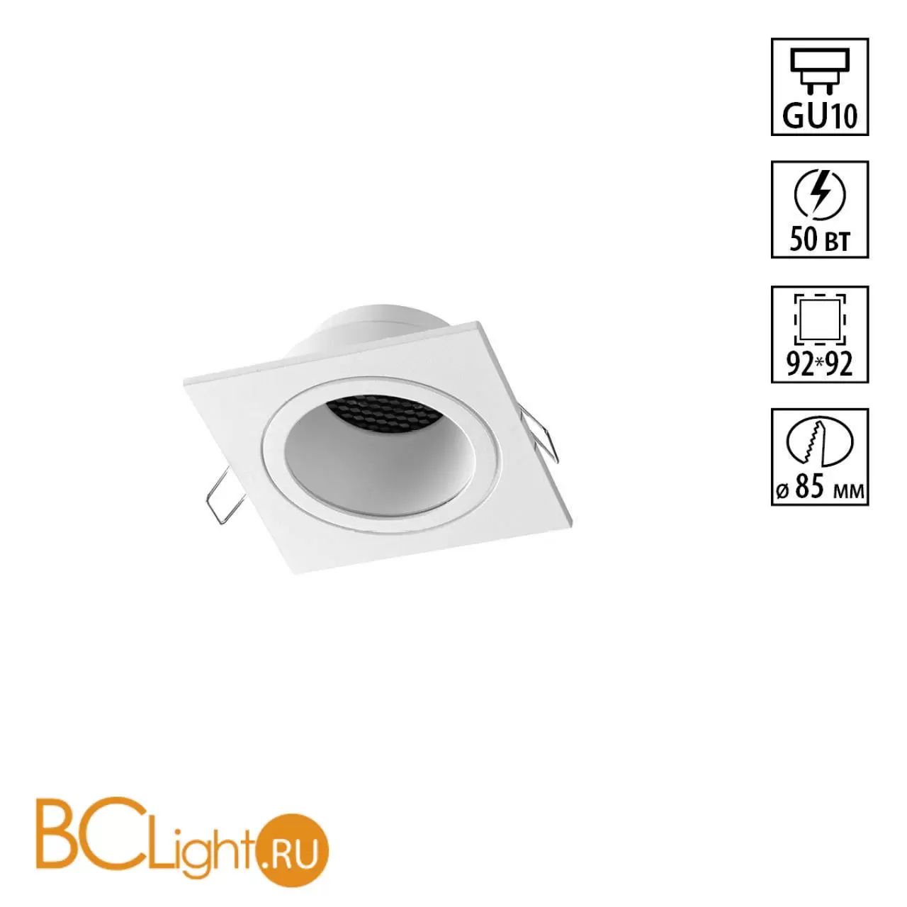 Квадратный белый встраиваемый спот с антибликовым фильтром под лампу GU10 Novotech MORUS WIR 371001