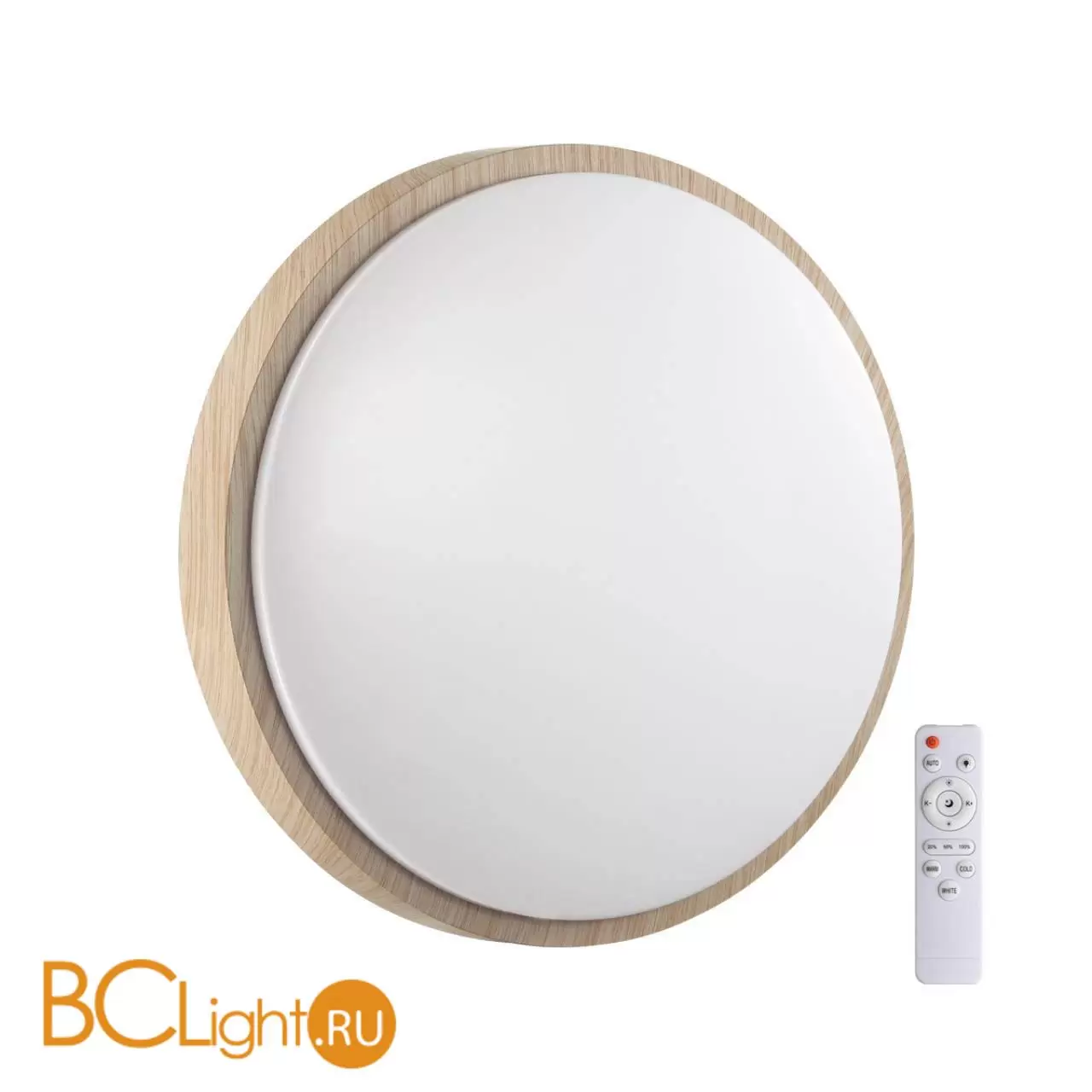 Светильник 7607/EL линии LOSTA состоит из металлического основания (базы) и пластикового рассеивателя. Материал рассеивателя - высококачественный пластик марки PMMA 2.0 белого цвета с матовой поверхностью, без текстуры. Пластик обеспечивает светильнику равномерное рассеивание и хорошее светопропускание. Форма плафона: круглая, декорирована ободом из пластика бежевого цвета "под дерево". Степень защиты IP43 позволяет использовать светильник в определенных зонах влажных помещений. В комплект входит заменяемый LED модуль с линзами, мощностью 72Вт, которая соответствует лампе накаливания 730Вт. А также пульт ДУ, с помощью которого осуществляется плавное изменение цветовой температуры 3000-6300К, изменение яркости, переход в режим переключения теплого/белого/холодного/ночного света. Светильник имеет функцию "память".