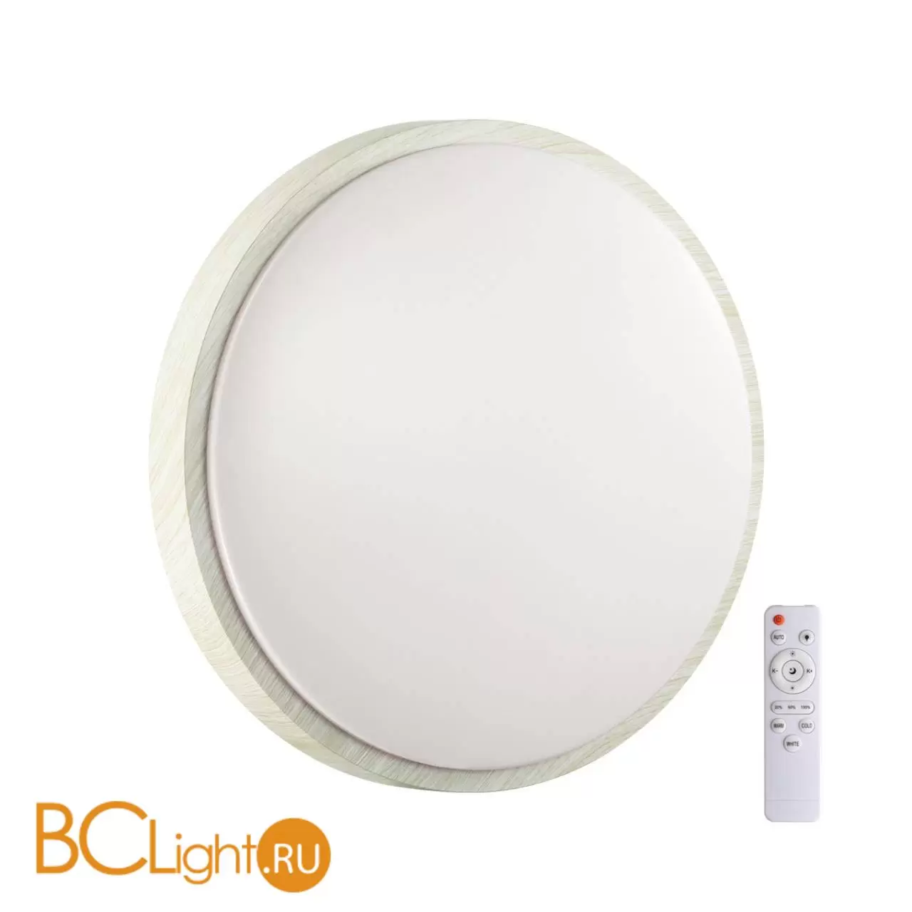Светильник 7628/EL линии LOSTA состоит из металлического основания (базы) и пластикового рассеивателя. Материал рассеивателя - высококачественный пластик марки PMMA 2.0 белого цвета с матовой поверхностью, обеспечивающий светильнику равномерное рассеивание и хорошее светопропускание. Форма плафона: круглая, декорирована ободом из пластика под беленое дерево. Степень защиты IP43 позволяет использовать светильник в определенных зонах влажных помещений. В комплект входит заменяемый LED модуль с линзами, мощностью 72Вт, которая соответствует лампе накаливания 730Вт. А также пульт ДУ, с помощью которого осуществляется плавное изменение цветовой температуры 3000-6300К, изменение яркости, переход в режим переключения теплого/белого/холодного/ночного света. Светильник имеет функцию "память".