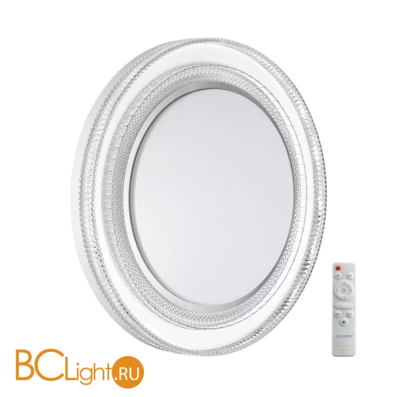 Светильник 7642/EL линии SUZY SILVER состоит из металлического основания (базы) и пластикового рассеивателя. Материал рассеивателя - высококачественный пластик марки PMMA 2.0 белого цвета с матовой поверхностью, без текстуры. Пластик обеспечивает светильнику равномерное рассеивание и хорошее светопропускание. Форма плафона: круглая, декорирована ободом "под хрусталь" из пластика прозрачного цвета. Обод украшен пластиковым кантом, цвет серебро. Степень защиты IP43 позволяет использовать светильник в определенных зонах влажных помещений. В комплект входит заменяемый LED модуль с линзами, мощностью 70Вт, которая соответствует лампе накаливания 610Вт. А также пульт ДУ (с креплением на стену), с помощью которого осуществляется плавное изменение цветовой температуры 3000-6000К, изменение яркости, переход в режим переключения теплого/белого/холодного/ночного света. Светильник имеет функцию "память".
