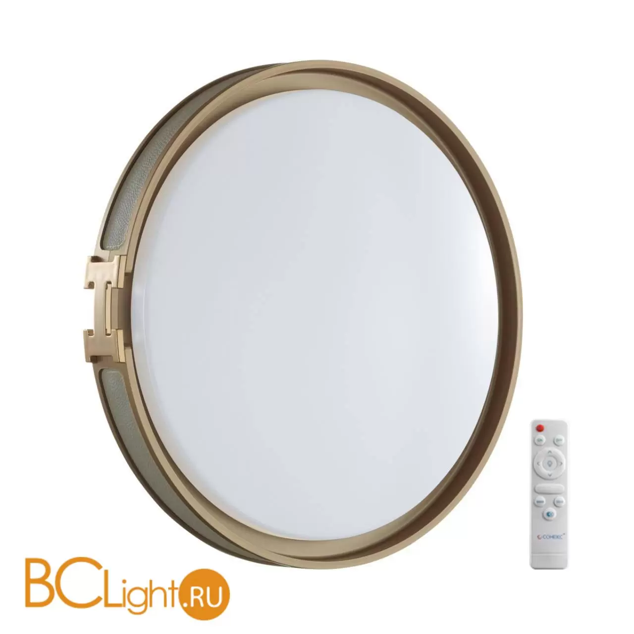 Светильник 7654/EL линии FAVEMO GREY состоит из металлического основания (базы) и пластикового рассеивателя. Материал рассеивателя - высококачественный пластик марки PMMA 2.0 белого цвета с матовой поверхностью. Пластик обеспечивает светильнику равномерное рассеивание и хорошее светопропускание. Форма плафона: круглая, декорирована ободом из искусственной кожи серого цвета. Обод украшен декоративной вставкой в виде пряжки ремня из пластика, цвет золото. Степень защиты IP43 позволяет использовать светильник в определенных зонах влажных помещений. В комплект входит заменяемый LED модуль с линзами, мощностью 70Вт, которая соответствует лампе накаливания 610Вт. А также пульт ДУ (с креплением на стену), с помощью которого осуществляется плавное изменение цветовой температуры 3000-6000К, изменение яркости, переход в режим переключения теплого/белого/холодного/ночного света. Светильник имеет функцию "память".
