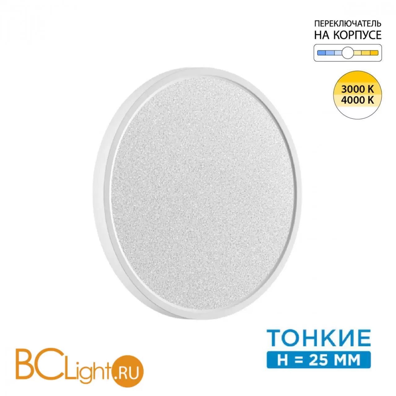 Корпус светильника серии OMEGA WHITE изготовлен из высококачественного противоударного ABS пластика белого цвета. Светильник имеет небольшую высоту всего 25мм, тонкий незаметный ободок и рассеиватель с россыпью серебряных искр, которые создают потрясающий декоративный эффект. Модель OMEGA оснащена переключателем цветовой температуры на тыльной стороне. Температура устанавливается перед монтажом в соответствии с вашими предпочтениями. Накладной светильник имеет удобную систему поверхностного монтажа - монтажную платформу.