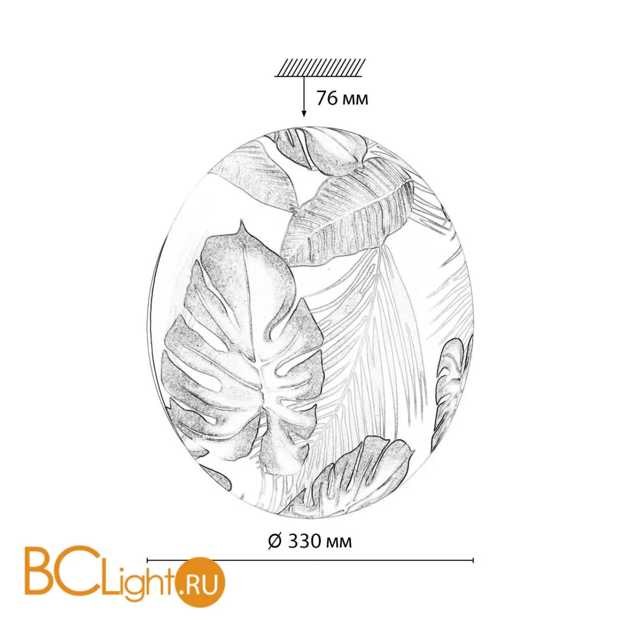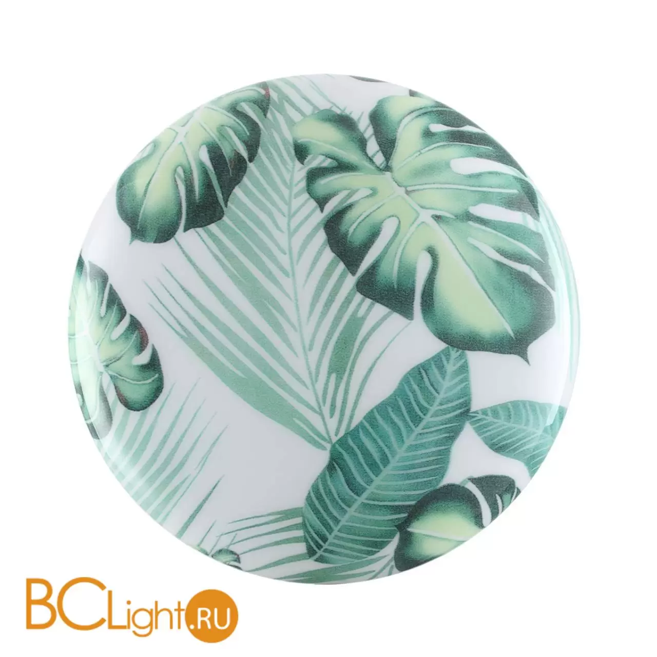 Светильник 7748/СL линии FLORI состоит из металлического основания (базы) и пластикового рассеивателя. Материал рассеивателя - высококачественный пластик марки PMMA 2.0 белого цвета с глянцевой поверхностью, обеспечивающий светильнику равномерное рассеивание и хорошее светопропускание. Форма плафона: круглая, декорирована орнаментом на плафоне с зеленым рисунком тропических листьев и съемным ободом белого цвета. Рисунок на плафоне выполнен методом цифровой печати по технологии прямого нанесения красок на акриловый лист. С целью предотвращения выцветания красок поверх рисунка наносится слой белой краски. После выдувания плафона при высоких температурах красочный рисунок приобретает стойкость и долговечность. Степень защиты IP43 позволяет использовать светильник в определенных зонах влажных помещений. В комплект входит заменяемый LED модуль с линзами, мощностью 30Вт, которая соответствует лампе накаливания 270Вт. Источник света имеет комфортную цветовую температуру 4000К (белый свет).