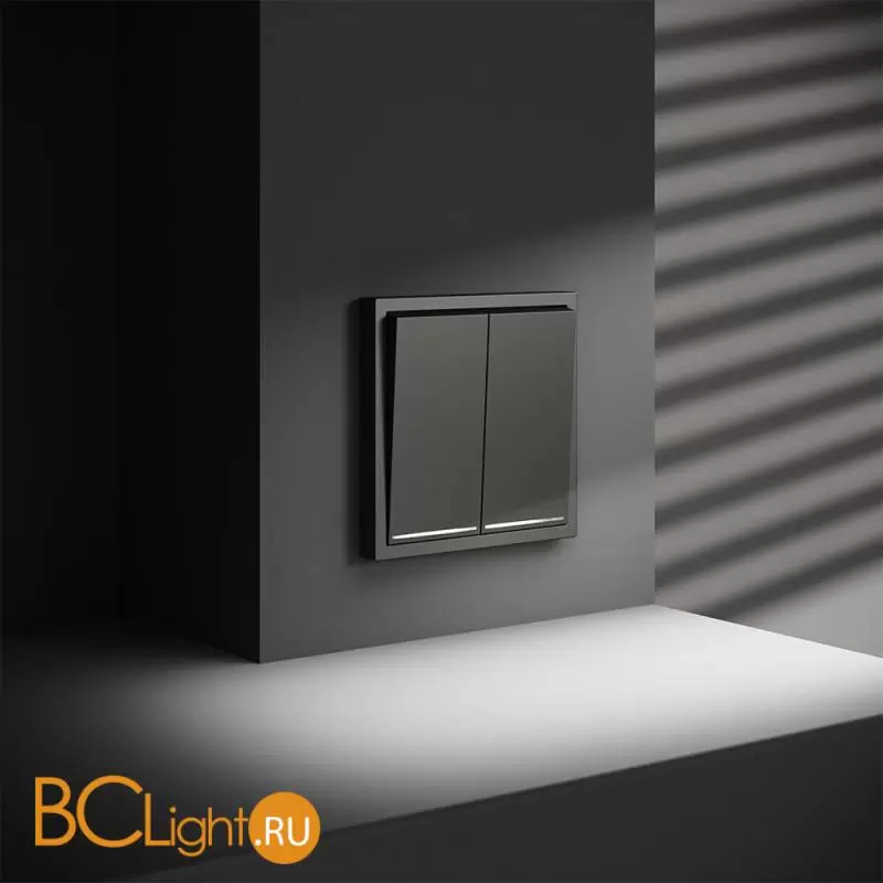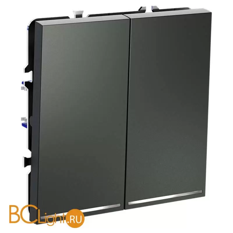 Выключатель встраиваемый VOLTUM S70 двухклавишный с подсветкой 10А, (титан) VLS020206