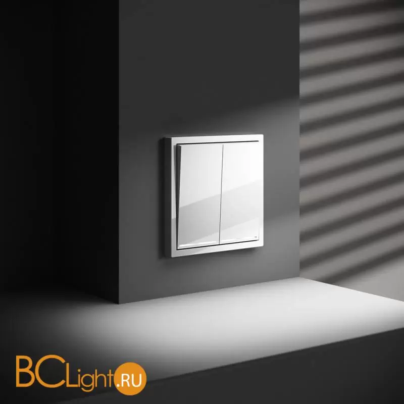 Проходной переключатель встраиваемый VOLTUM S70 двухклавишный с подсветкой 10А, (белый глянцевый) VLS020401
