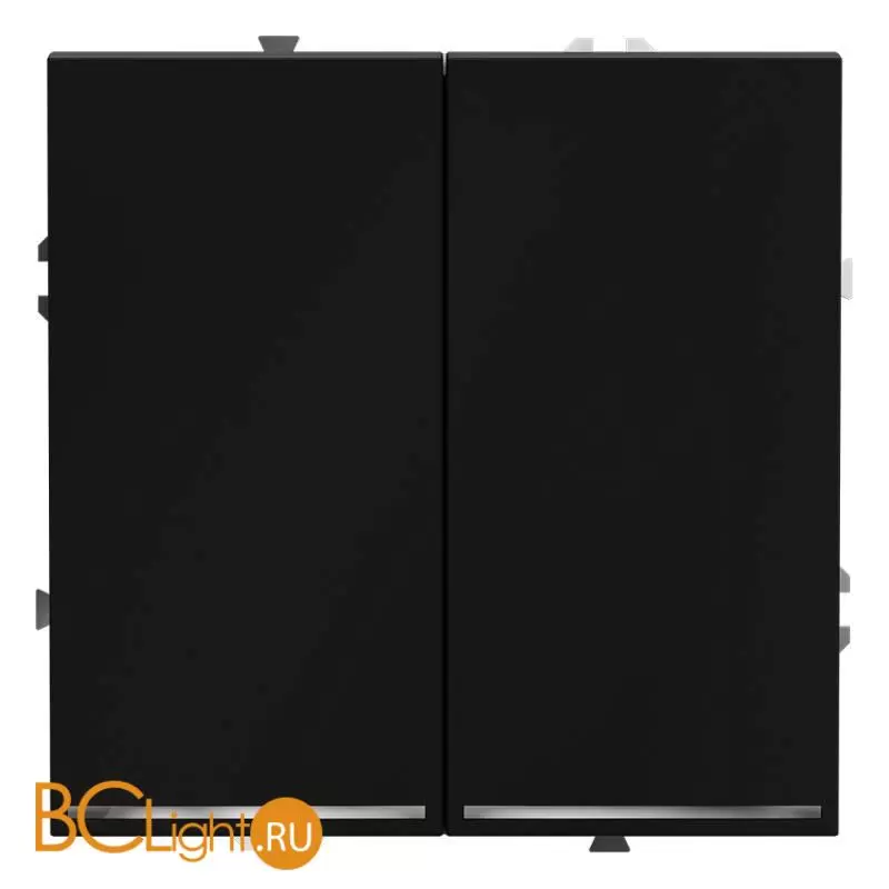 Проходной переключатель встраиваемый VOLTUM S70 двухклавишный с подсветкой 10А, (черный матовый) VLS020408