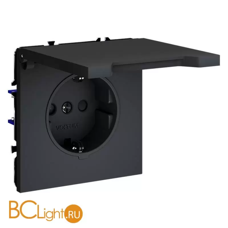 Розетка встраиваемая VOLTUM S70 с заземлением, защитными шторками и крышкой 16А, (графит) VLS040307