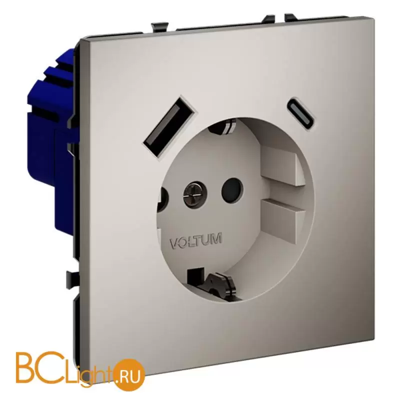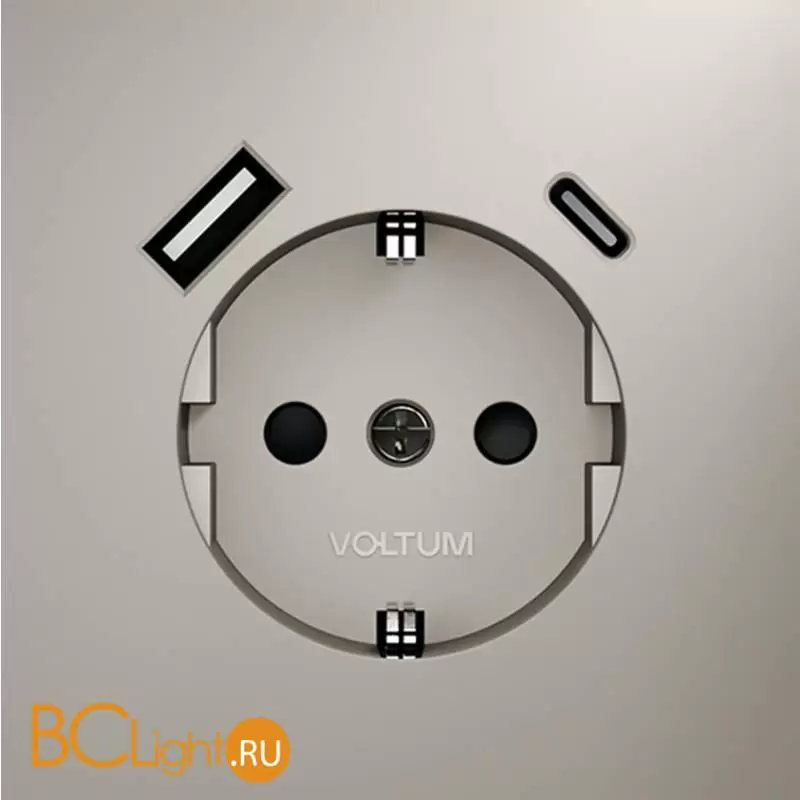 Информация о товареРозетка встраиваемая VOLTUM S70 с заземлением и защитными шторками, 16А, с USB, A+С, (кашемир) VLS040503