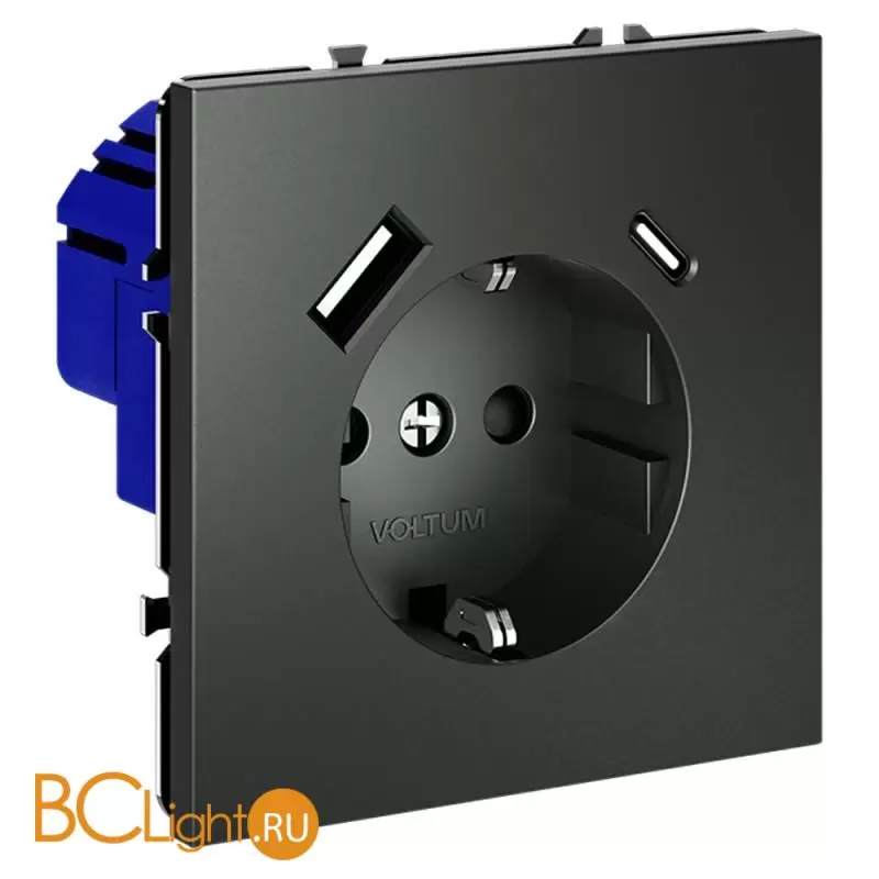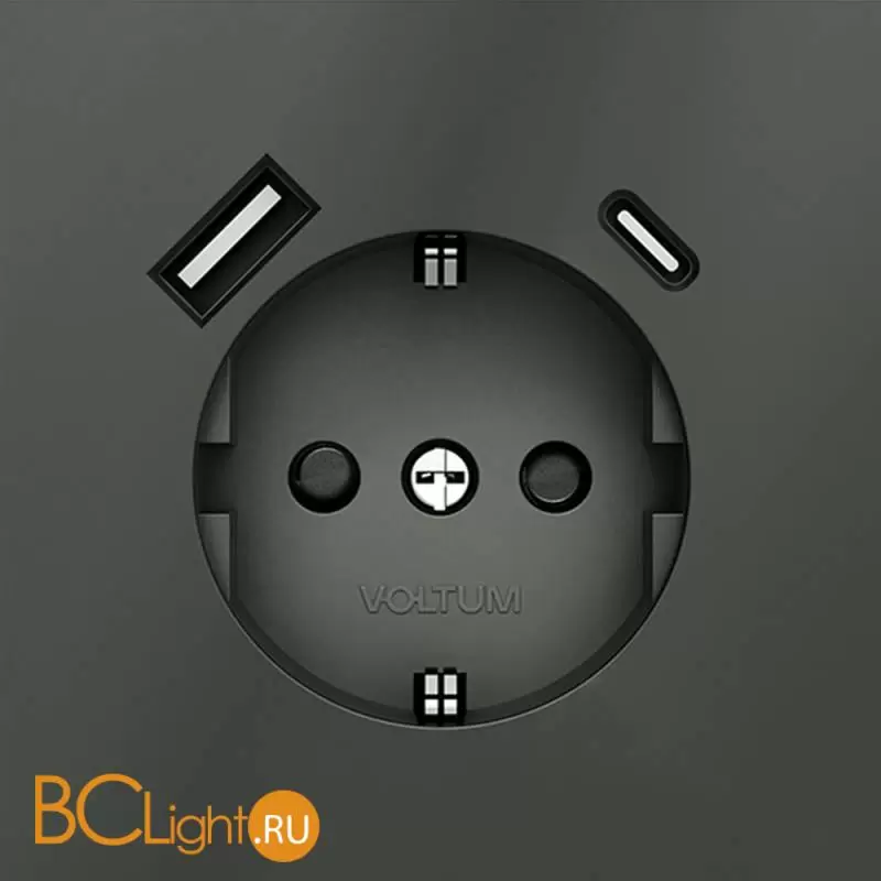 Информация о товареРозетка встраиваемая VOLTUM S70 с заземлением и защитными шторками, 16А, с USB, A+С, (титан) VLS040506